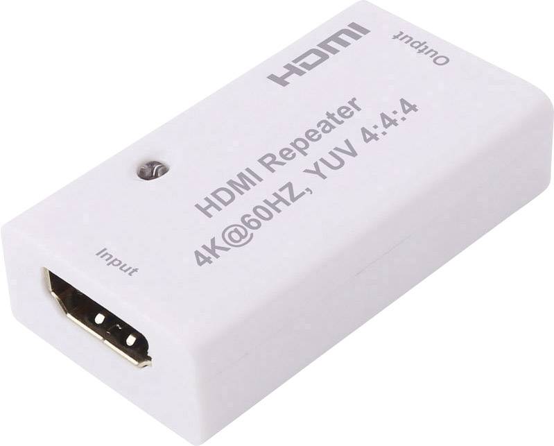 Der Profi HDMI 2.0 Repeater verstärkt und verbessert das HDMI Signal sodass mit ihm HDMI Kabel verlängert und größere Stecken überbrückt werden können. Dank modernster Technologie unterstütz der Repeater die aktuellen 4K60Hz 4:4:4 Formate (18Gbps) und ist abwärtskompatibel. Er wird einfach Plug&Play zwischen die HDMI Kabel gesteckt und automatisch über die HDMI Buchse mit Strom versorgt (kein extra Netzteil erforderlich). Bei der Installation wird das längere HDMI Kabel zwischen Quelle und Repeater und das kürzere HDMI Kabel zwischen Repeater und TV/Beamer installiert.