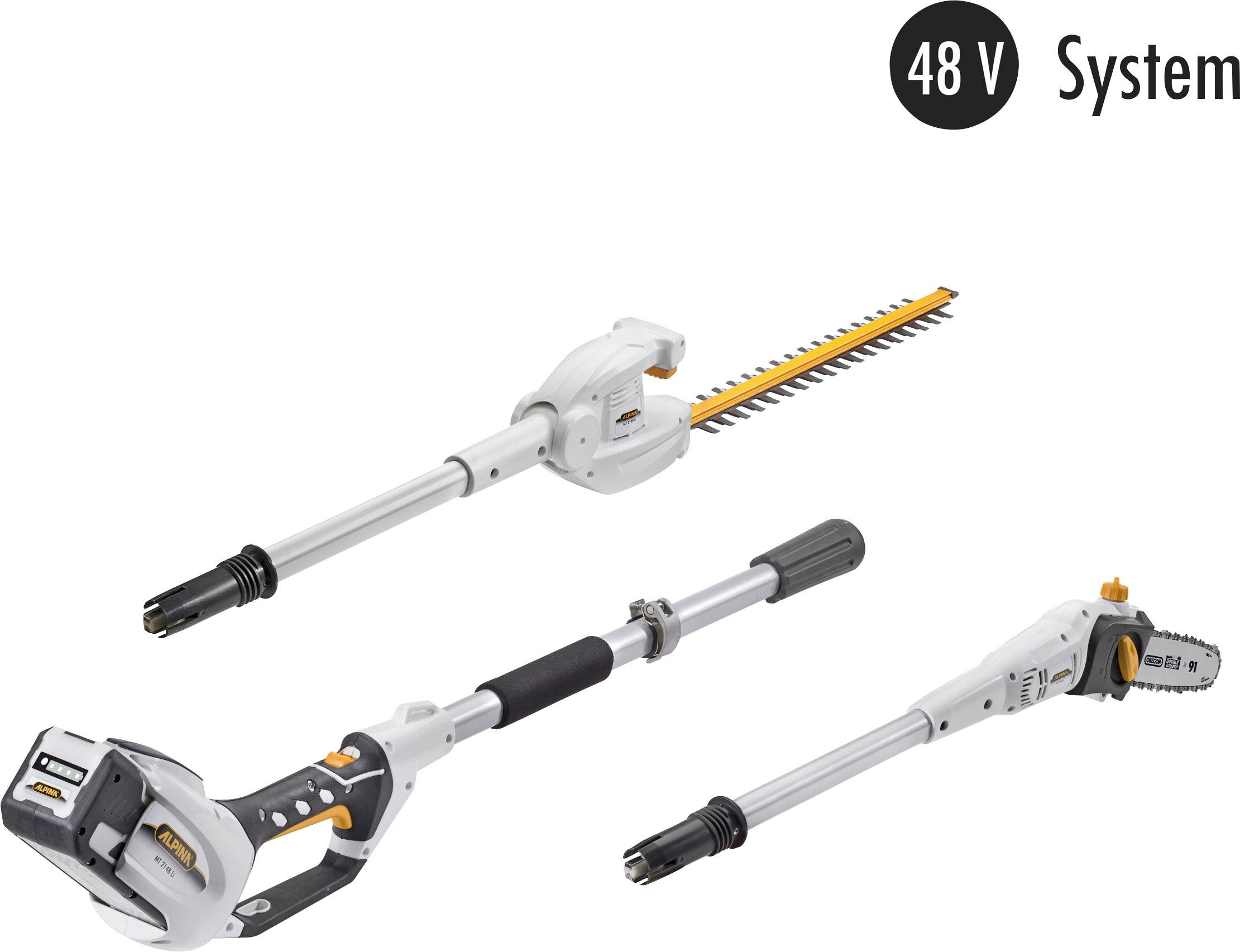 Das Akku Multitool beinhaltet zwei Geräte und eine Verlängerung. Mit dem Hochentaster können mit dem 20 cm Schwert ohne Probleme Äste und Zweige in einer Höhe bis zu 260 cm geschnitten werden. Die Kettenschmierung erfolgt automatisch und der Kopf ist auf mehrere Positionen einzustellen. Mit der Heckenschere kann mit dem 51 cm Schwert eine Arbeitshöhe von ca. 296 cm erreicht werden. Der Zahnabstand von 18 mm ermöglicht ein Schneiden von Zweigen bis 18 mm Durchmesser. Es ist ein ermüdungsfreies Arbeiten auch über einen längeren Zeitraum möglich.