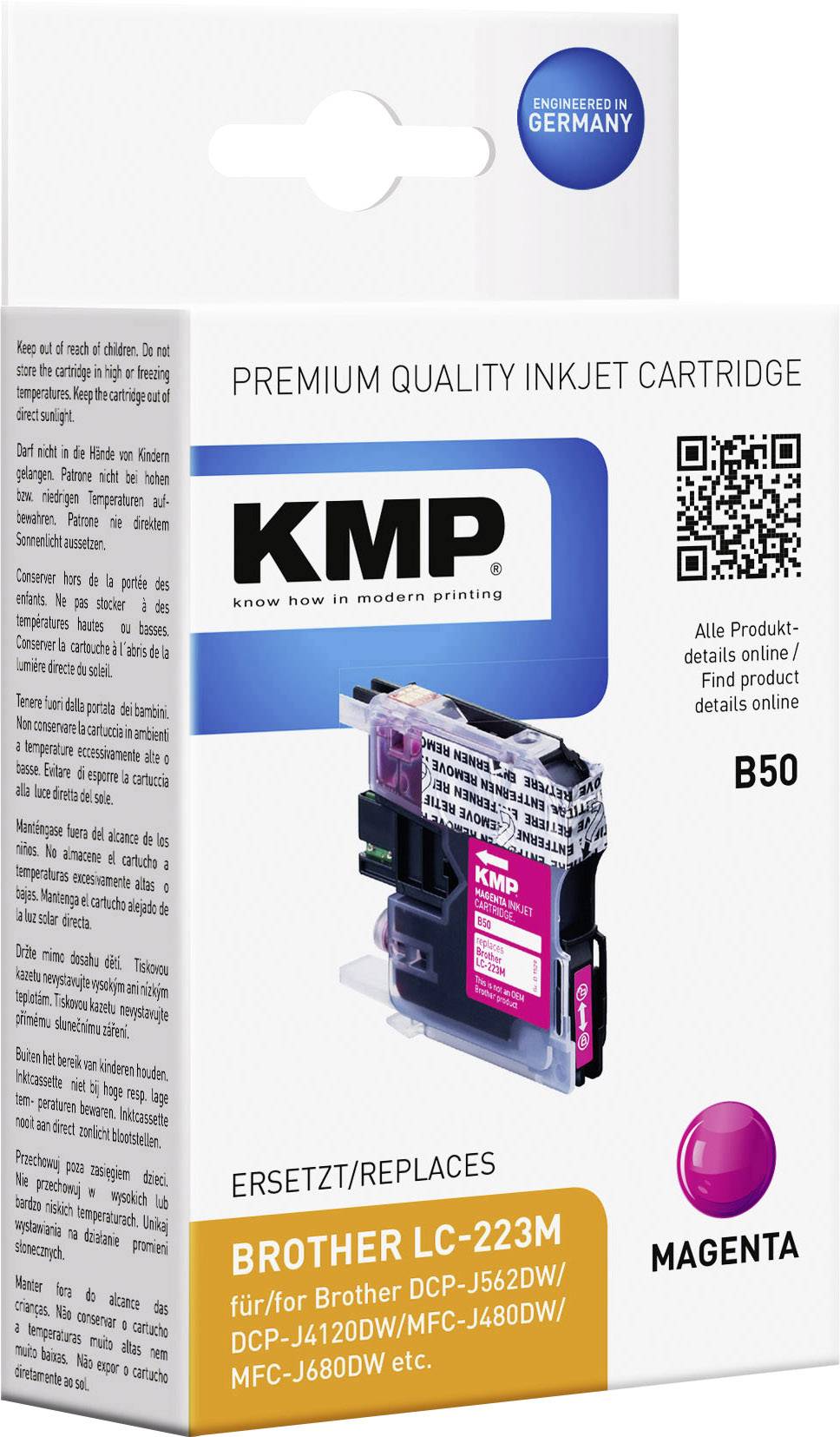 Das Original ist unser Maßstab. Daher werden für nahezu jeden neuen Patronentyp die einzelnen Farben in den KMP-Labors neu entwickelt. Für die Auswahl der Rohstoffe gibt es strenge Qualitätsmaßstäbe. Die Entwicklung aller Tinten findet an der deutschen Firmenzentrale statt, die Produktion an hauseigenen Standorten in Europa.