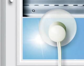 Das Anbringen des Sonnensensors ist leicht und schnell erledigt. Der Sensor wird einfach mit einem Saugnapf auf der Scheibe befestigt und per Stecker mit dem elektrischen Gurtwickler verbunden. Für den Betrieb des Lichtsensors ist kein weiterer Stromanschluss notwendig, da die Stromversorgung über den ROLLODRIVE 35 und ROLLODRIVE 45 erfolgt