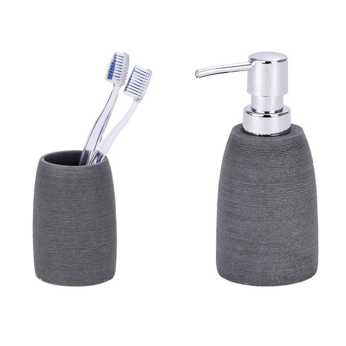 Im komfortablen 2er Set sind Seifenspender und ein Zahnputzbecher aus der schönen Bad-Serie Goa enthalten.