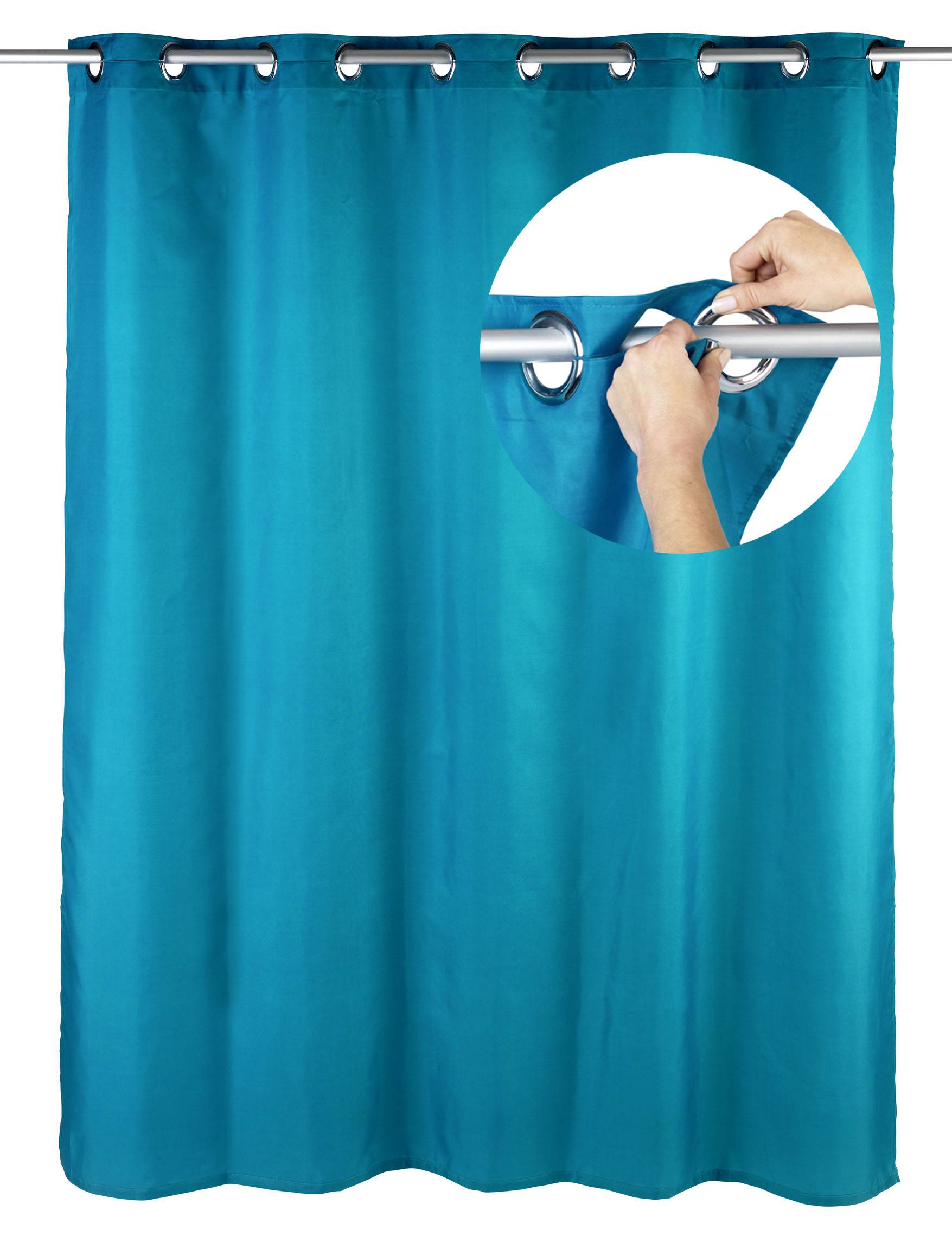 Mit seinem frischen Petrol fügt sich der hochwertige Duschvorhang Comfort apart in die Badezimmereinrichtung ein. Er eignet sich mit einer Breite von 180 cm sowohl für Duschen als auch Badewannen.