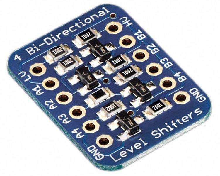Da die Arduino®-Boards mit 5 V betrieben werden, aber die meisten Sensoren, Anzeigen und Flash-Karten nur mit 3,3 V, stellen viele Bastler fest, dass sie eine Pegelanpassung durchführen müssen. Dieses Breakoutboard besitzt 4 BSS138-Feldeffekttransistoren mit 10 kΩ Pullup-Widerständen. Die Spannungswandlung ist ab 1,8 V auf der einen Seite und bis 10 V auf der anderen. Für den Einsatz mit I²C entworfen, funktioniert das Board auch für serielle TTL-, langsame SPI- und andere digitale, unidirektionale und bidirektionale Schnittstellen unter 2 MHz. Die komplett montierte und geprüfte Leiterplatine kommt mit 4 voll-bidirektionale Spannungswandlern sowie 2 Sechs-Pin-Header, die Sie auf die Platine löten können, um sie auf einer Steckplatine zu platzieren.