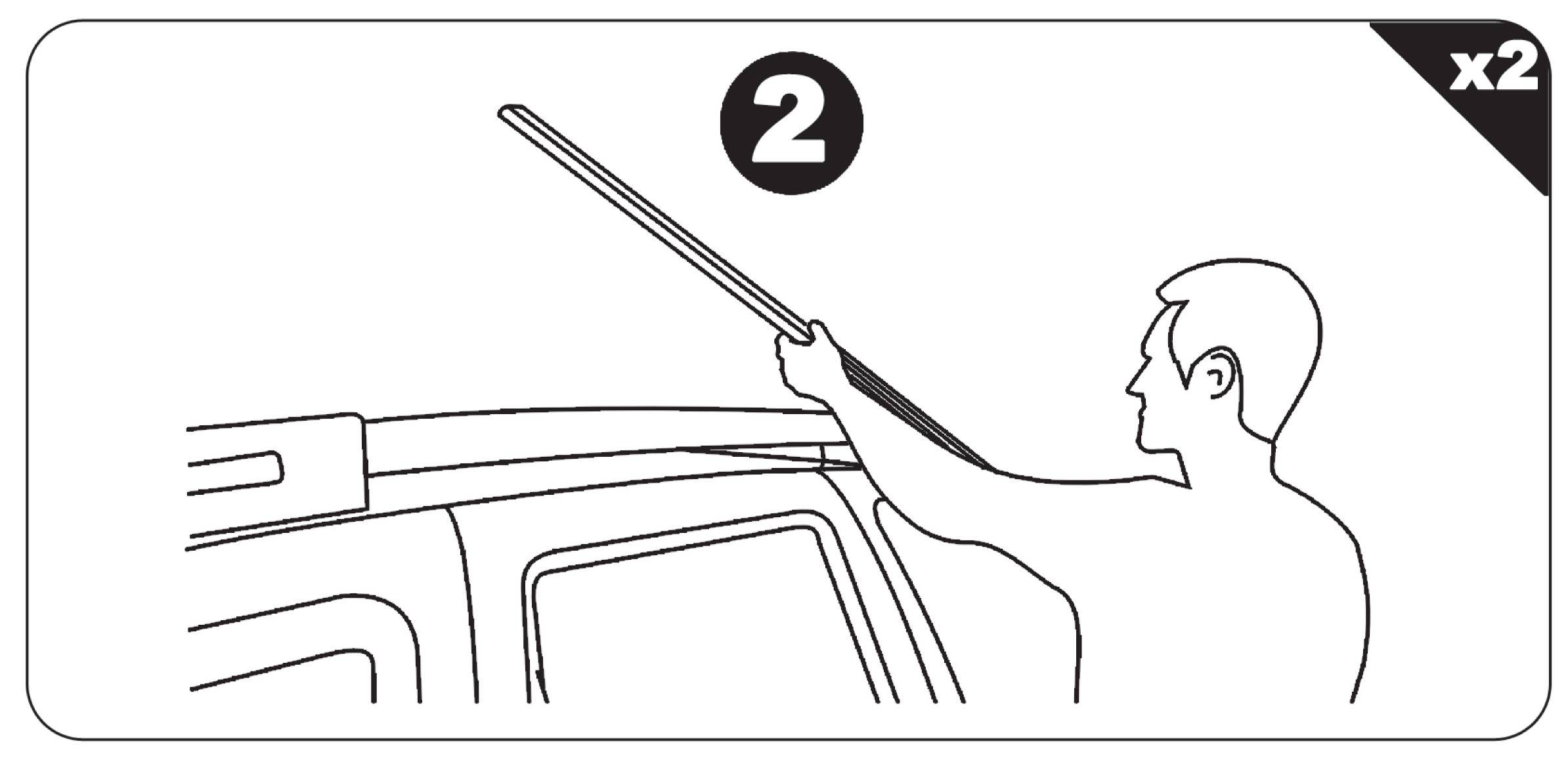 2 Relingträgerstangen mit den kompletten Befestigungsteilen