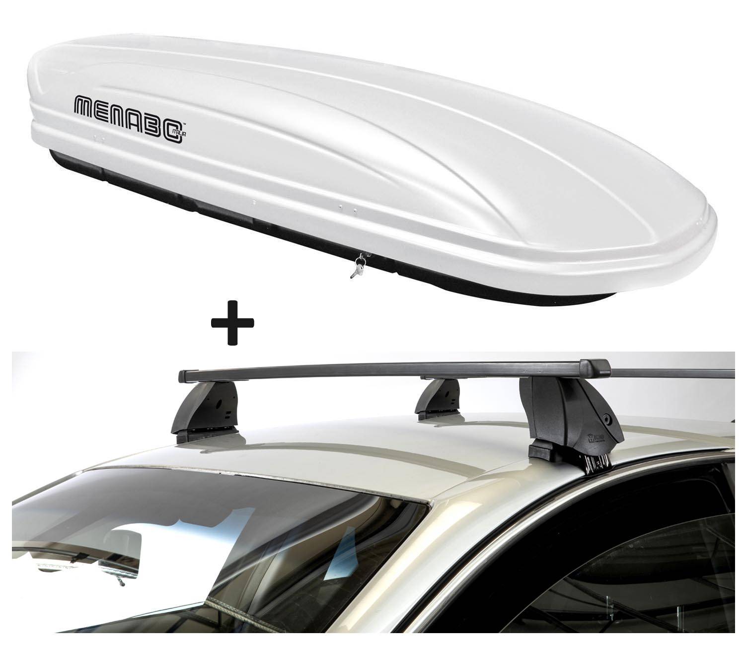 Dachbox VDPMAA320 320 Liter abschließbar weiß + Dachträger K1 MEDIUM kompatibel mit Volvo V40 (5Türer) 12-16