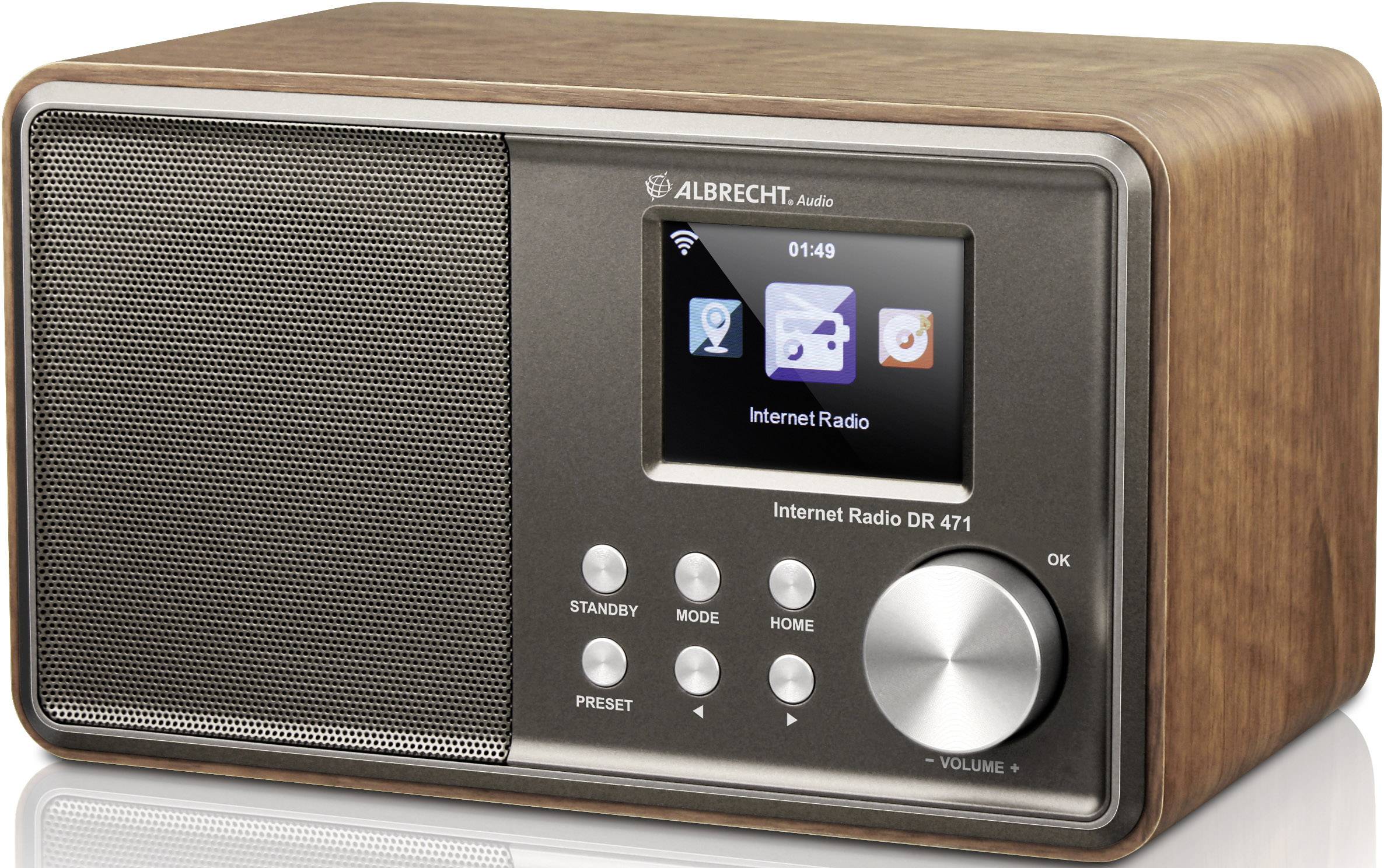 Das Internetradio Albrecht DR 471 ist dank seines Holzgehäuses besonders klangstark. Über 25.000 Webradio-Sender weltweit können via WLAN empfangen werden. Das Internetradio Albrecht DR 471 bringt mehrere Möglichkeiten des komfortablen Radioempfangs und Musikstreamings in einem kompakten und optisch ansprechenden Gerät zusammen. Das Gerät bietet dank seines Holzgehäuses ein beeindruckendes Klangerlebnis. Über 25.000 Webradiosender aus aller Welt sowie klassische UKW-Sender können über das DR 471 empfangen werden. Via DLNA-Heimvernetzung und der kostenlos erhältlichen App "AirMusic Control" wird das Albrecht DR471 zum Smart Speaker: Musik oder Hörspiele lassen sich in bester digitaler Klangqualität vom Smartphone oder Tablet PC über das Radio abspielen. Auch die Radiosteuerung selbst wird über die App ermöglicht. Über die Funktion "Universal Plug and Play" (UPnP) wird das DR 471 auf Wunsch mit dem PC gekoppelt. Am Computer zur Wiedergabe freigegebene Medien können dann auf dem Display ausgewählt und über das Internetradio abgespielt werden.