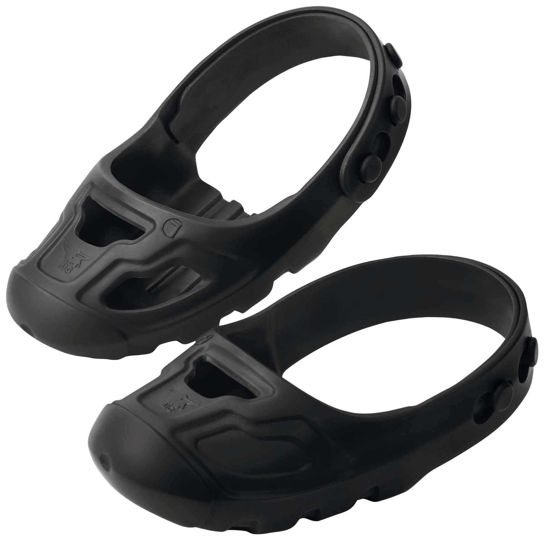 Die Schuhschoner aus weichem Kunststoffmaterial lassen sich durch die integrierten Rastnasen leicht auf die Größe der Schuhe einstellen und können so an allen gängigen Kinderschuhen in den Größen 21 – 27 befestigt werden. Für einen guten Halt beim Fahren und Laufen sorgt das Anti-Rutsch-Profil auf der Unterseite der Schuhschoner. Dabei hinterlässt der hochwertige Kunststoff keine Spuren auf Böden.