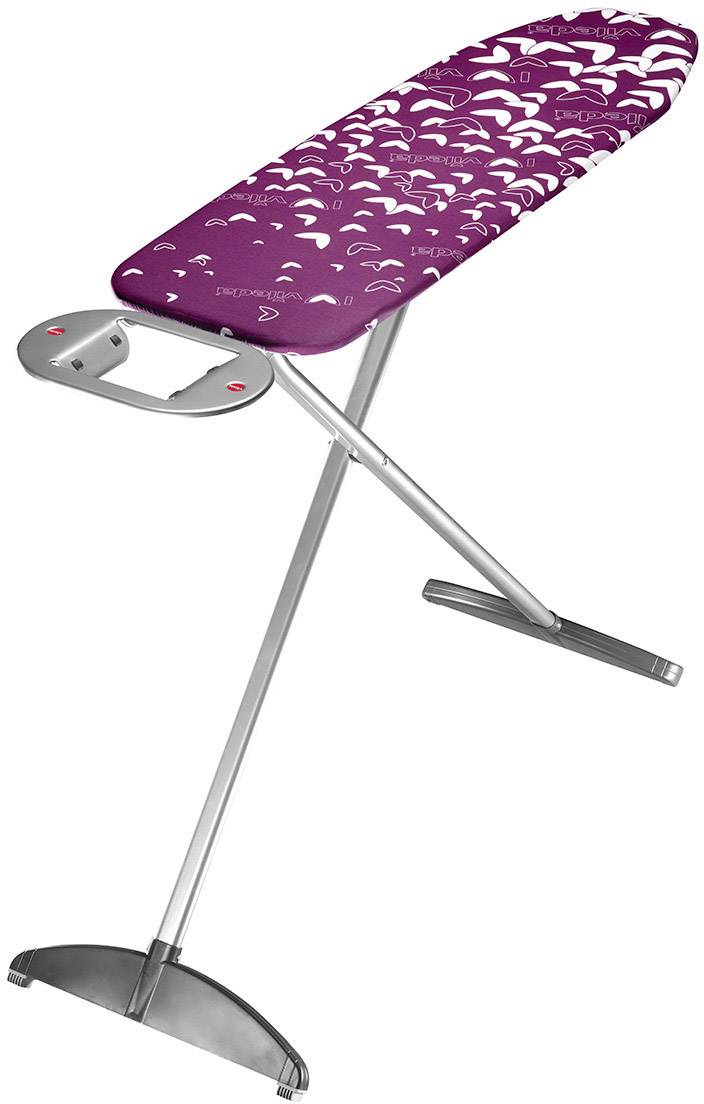 Dieser Vileda Bügeltisch bietet alles was eine Hausfrau oder ein Hausmann zum Bügeln braucht: Der Bügeltisch hat eine handliche Bügelfläche mit 114 x 34cm und ist somit platzsparend und leicht zu verstauen. Ihr Bügeleisen können Sie sicher in der Parkmulde mit 3 Silikonknöpfen zum Schutz vor Verkratzen der Bügeleisensohle abstellen. Der Bügeltisch ist stufenlos höhenverstellbare bis zu einer Höhe von 96cm. Die Höhenverstellung erfolgt mit Click+Stop System, für einfaches und sicheres verstellen und zusammenklappen.