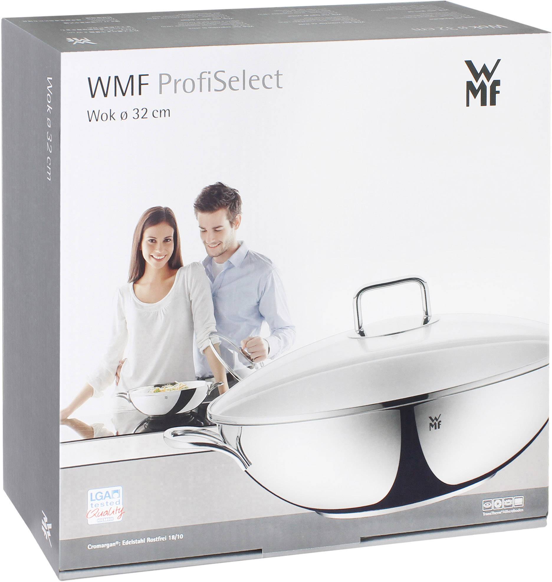 Die hohe, kugelig gewölbte Pfanne ist Topf, Dampfgarer und Fritteuse in einem und gehört in Asien zum wichtigsten Kochutensil. Und auch wir lieben den Wok: Mit ihm gelingen nicht nur stilecht asiatische Gerichte, darin können Sie auch jede Art von Gemüse, Fleisch und Fisch dämpfen, schmoren und dünsten. Die bekannteste Garmethode ist freilich das Pfannenrühren, wenn unter ständigem Rühren die Zutaten kurz und scharf angebraten werden. In der tiefen, bauchigen Form verteilt sich die Hitze gleichmäßig, durch den Metalldeckel mit Wrasenabzug entweichen Kochdünste. Traditionell sitzen seitlich am Wok zwei gegenüberliegende Griffe, an der Wokpfanne befindet sich ein Griff plus Stiel. Heute muss ein Wok nicht mehr viel wiegen, um die Hitze vom Herd schnell weiterzugeben. Das erledigt der patentierte TransTherm® Allherdboden, der auf jeden Herd passt. Die spülmaschinengeeignete Wokpfanne liefert WMF mit Glasdeckel, Ablagegitter zum Warmhalten und Dämpfereinsatz.