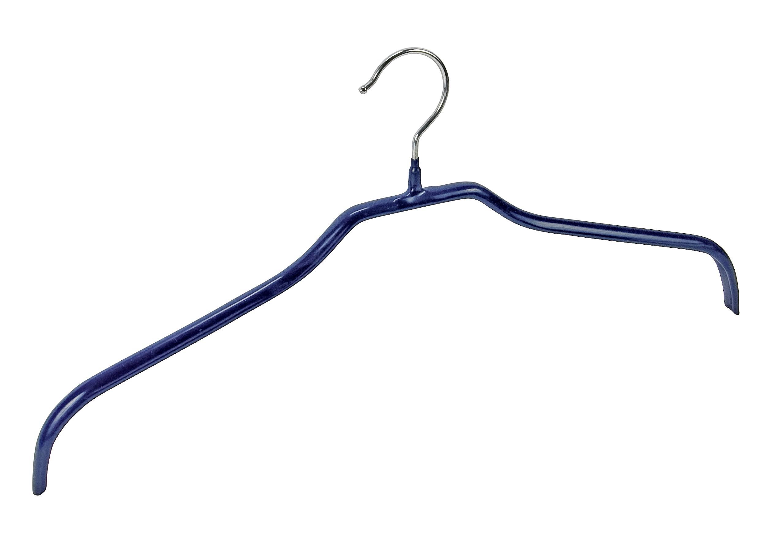 Die hochwertigen Bügel sind aus Metall gefertigt und mit rutschhemmendem, dunkelblauem Kunststoff beschichtet. Der drehbare Haken verschafft noch weiteren Komfort im Kleiderschrank.