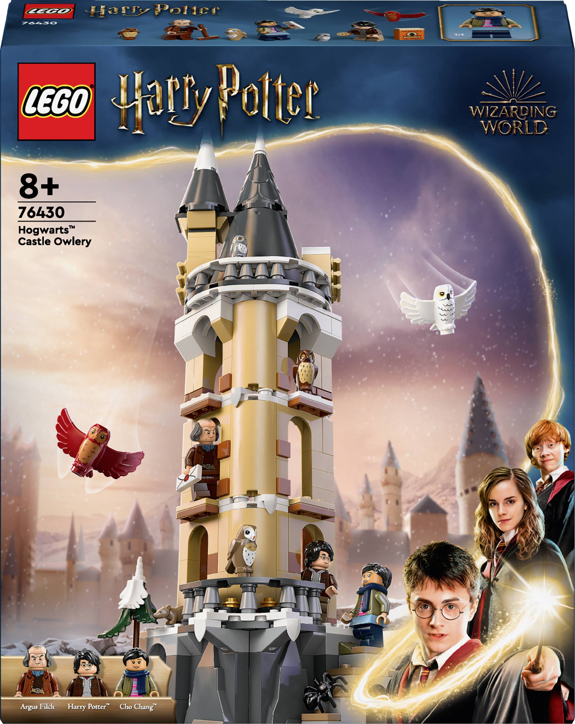 Das Hogwarts-Spielzeug beinhaltet ein detailgetreues Modell des Eulereiturms aus LEGO Steinen, in dem die Eulen der Schule untergebracht sind. Dort befinden sich Fenstersimse, auf denen die Eulen sitzen können, eine Eulenstatue sowie 1 von 14 Hogwarts Porträts zum Sammeln. Auch Utensilien zur Versorgung der Eulen lassen dein Kind kreativ spielen. Das Kinderspielzeug beinhaltet darüber hinaus 3 LEGO Harry Potter Minifiguren sowie 5 verschiedene Spielzeug-Eulen für spannende Rollenspiele.