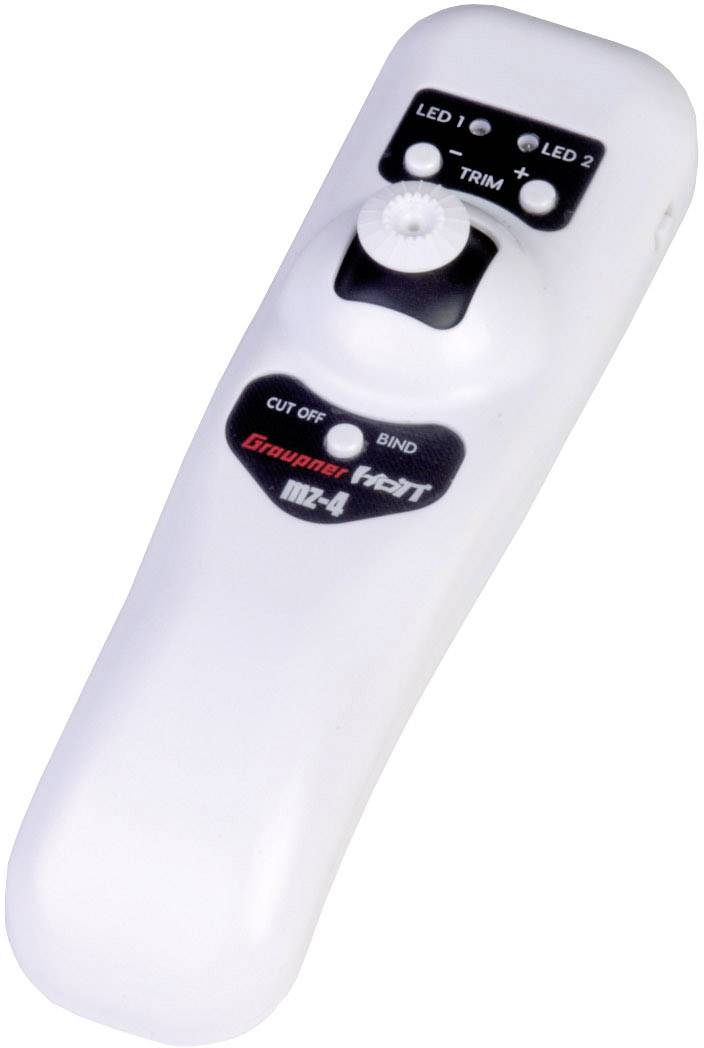 Die Graupner Fernsteuerung mz-4 HoTT ist ein innovativer 2 Kanal Sender, der die einhändige Steuerung ermöglicht.
