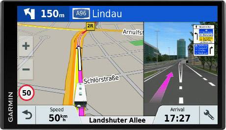 Auf dem Camper 770LMT-D sind Detailkarten für Europa vorinstalliert. Diese Karten enthalten Einschränkungen für Wohnmobile und Wohnwagen, beispielsweise Brückenhöhen, Gewichtsbeschränkungen und ähnliche Informationen für die meisten Hauptverkehrsstraßen und Autobahnen. Sie sehen und hören diese hilfreichen Warnungen, damit Sie sich auf kommende Gefälle, Steigungen und mehr vorbereiten können.