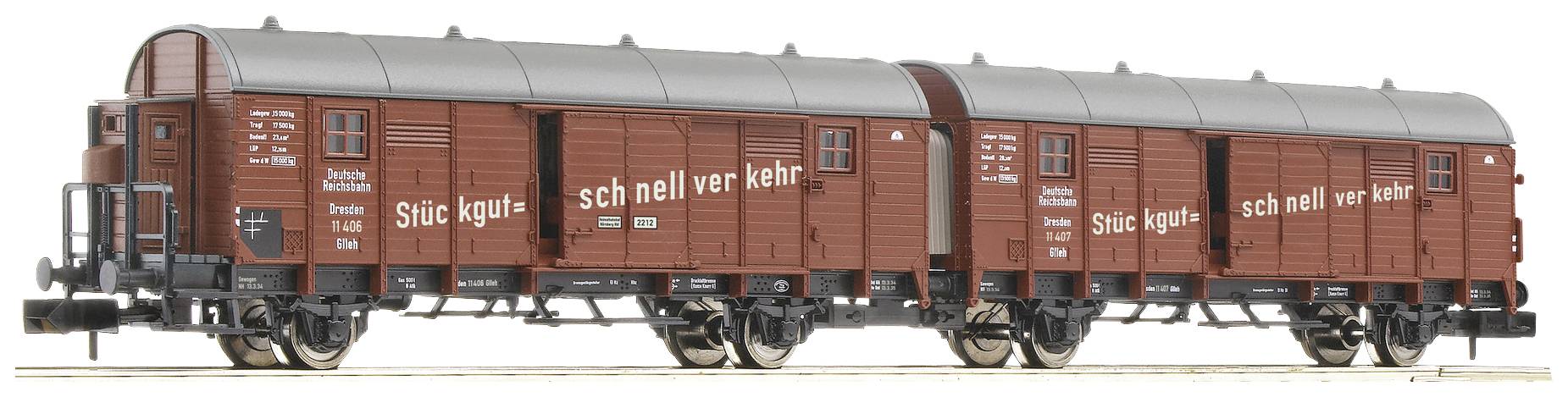 Leig-Wageneinheit 2, bestehend aus zwei gedeckten Güterwagen, Bauart Glleh „Dresden“, der Deutschen Reichsbahn-Gesellschaft