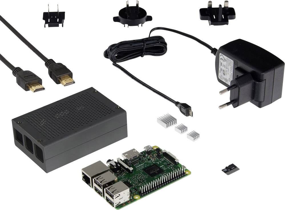 Raspberry PI 3B + Alu Gehäuse + Kühler + Software mit 16GB Speicherkarte + Netzteil + HDMI Kabel.