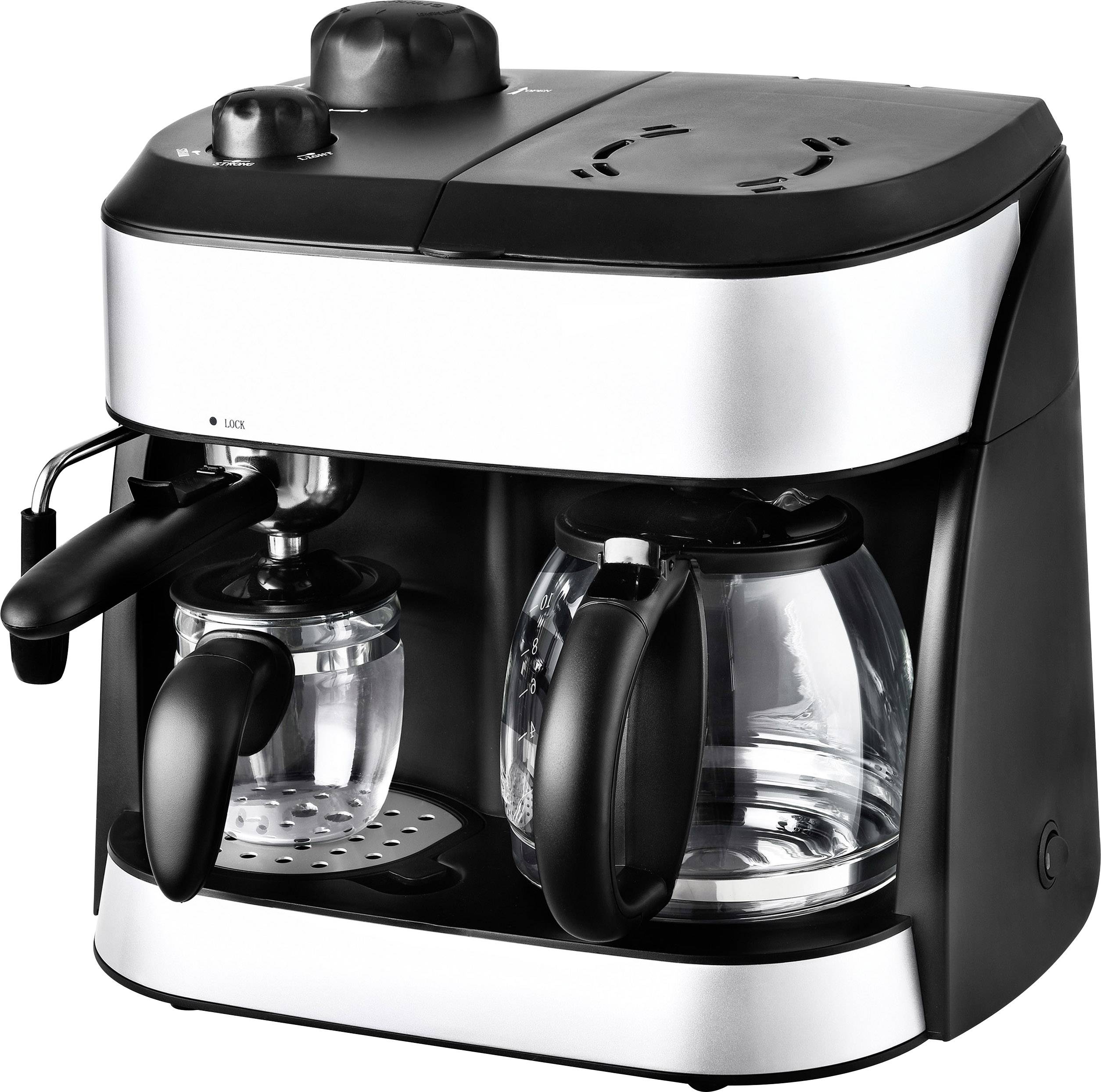 Espresso, Filterkaffee, Cappuccino, heißer Kakao, Tee, Latte Macchiatto... für all diese köstlichen Heißgetränke brauchen Sie nicht länger viele verschiedene Geräte oder teure Kapseln und Pads. Mit dem praktischen Kombi-Kaffeebereiter TKG EXP 1001 C können Sie sämtliche Kaffeespezialitäten problemlos zubereiten. Das Gerät besteht aus einer Espressomaschine mit kraftvollen 3,5 bar sowie einer Kaffeemaschine mit 1,25 Litern Fassungsvermögen. Als besonderes Highlight ist außerdem eine Dampfdüse mit einstellbarer Dampfstärke integriert - so können Sie ganz einfach und schnell den perfekten Milchschaum für die verschiedenen Kaffeespezialitäten erzeugen.