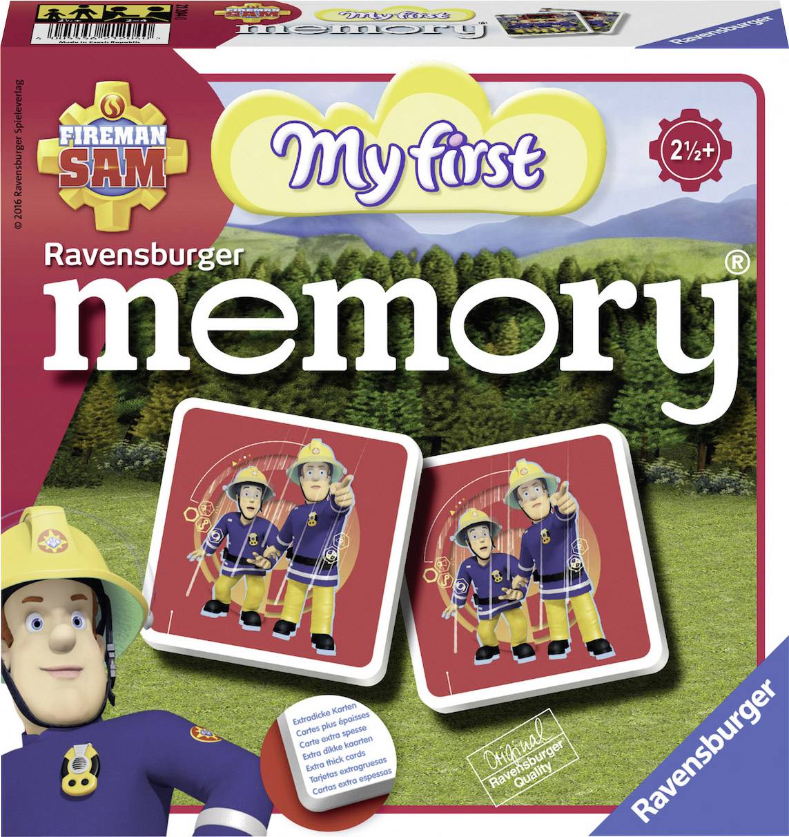 Ein rotes Schiff, eine blau-weiße Katze und ein gelbes Flugzeug – wo war nochmal die jeweils zweite Karte? memory® ist das genial einfache Spielprinzip, bei dem Kinder meist gegen Erwachsene gewinnen. Mit den großen farbigen Bildern von „Mein erstes memory®“ klappt das Paaresuchen sofort. Und die Kleinen freuen sich über jedes Erfolgserlebnis! Die kindgerechten Motive sind klar zu erkennen und regen die Kleinen auch zum Erzählen an. Der extra dicke Karton verleiht den Karten eine erhöhte Stabilität. Ziel des Spiels ist es, zwei Bilder miteinander in Verbindung zu bringen. Aufmerksam merken sich die Kinder sämtliche Details der Kärtchen und deren Position. Sie decken eine Karte nach der anderen auf und der Stapel der Kartenpärchen wird immer höher. Mit diesen Motiven und Karten ist das erste memory® Spiel bereits mit 2 1/2 Jahren möglich.