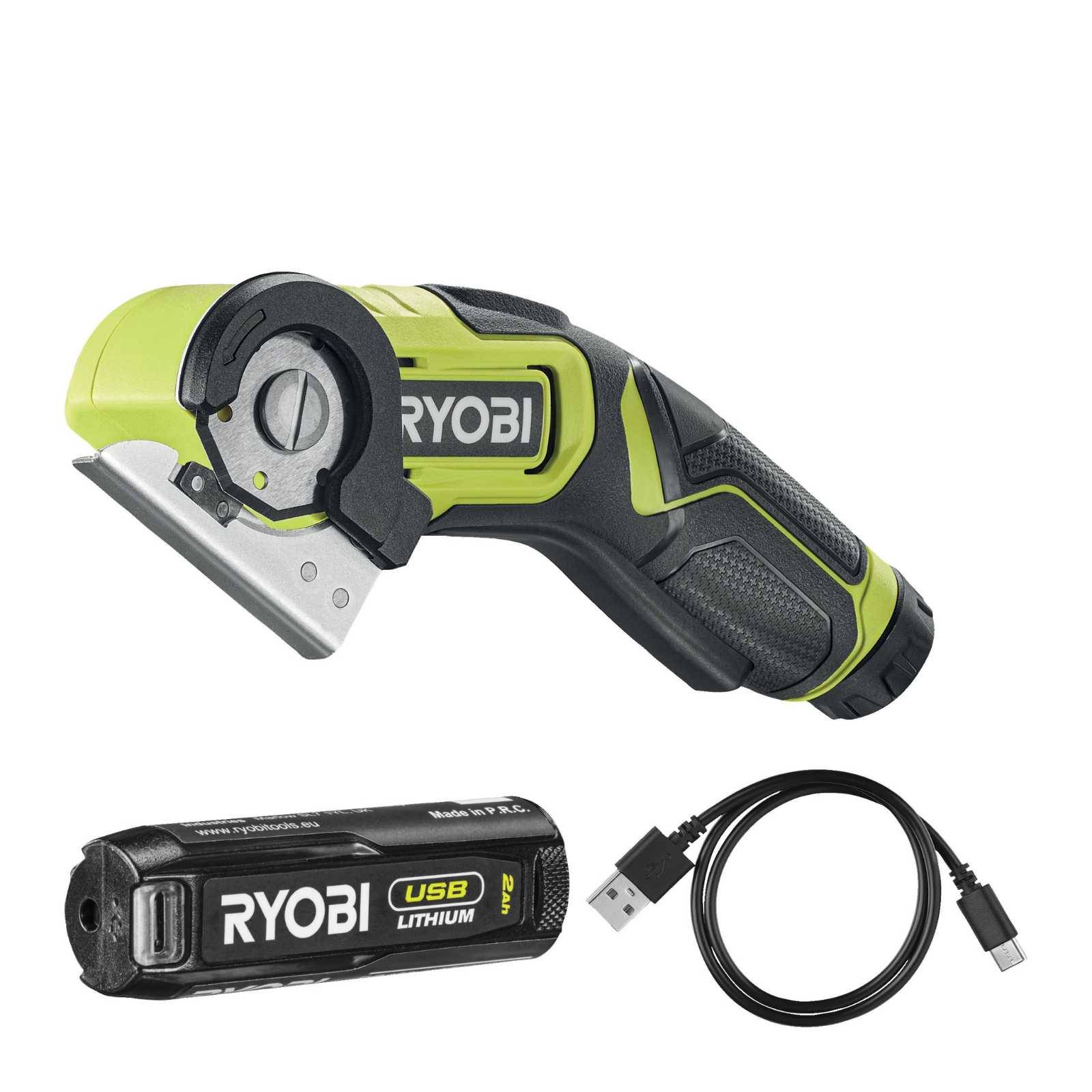 Die RYOBI Akku-Universalschere RCT4-120G vereint Kompaktheit, leistungsstarken Motor, selbstschärfende Klinge und Flexibilität durch den herausnehmbaren USB-Lithium-Akku.