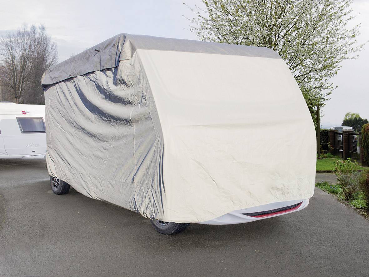 Die hochwertige Wohnmobil-Schutzhülle ist atmungsaktiv und besteht aus 4-lagigem Textilgewebe am oberen Teil (Dach). Die Seitenteile sind aus einlagigem 90 gsm Material.