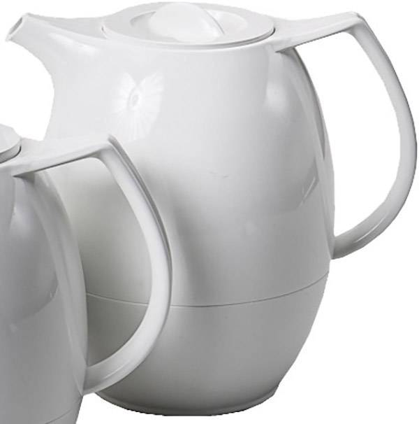 Optimaler Teegenuss Zuhause oder im Büro – Weiße zeitlos elegante Isolierkanne (1 L) in Porzellan-Optik und typischer Teekannen-Form.
