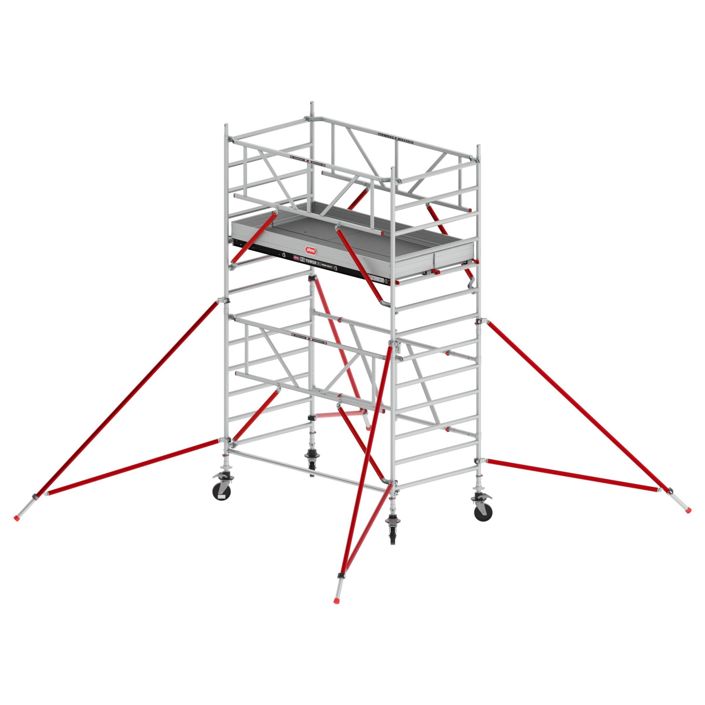 Das klappbare RS TOWER 55 Zimmergerüst ist ein breites Fahrgerüst mit Ausbaumöglichkeiten. Ein praktisches Zimmergerüst mit einer großen Arbeitsfläche, für Innen- und Außen geeignet. Das System kann flexibel mit den Komponenten der RS TOWER 5-Serie erweitert werden. So können Sie das Zimmergerüst ganz einfach selbst bis zu einer Arbeitshöhe von 13,80 m ausbauen. Dank der breiten Rahmen von 1,35 m eignet dieses Zimmergerüst sich hervorragend für die Arbeit mit zwei Personen. Der Klappteil im Rahmen des Gerüsts hat wenig lose Bauteile und das Gerüst wird in einem Stück zusammengeklappt. Außerdem können Sie den teleskopischen Klapprahmen mit Plattformen von 1,85 m, 2,45 m oder 3,05 m verwenden. Die Rahmen aus der 5-Serie sind 2 mm dick. Das macht das RS TOWER 55 zum stärksten Zimmergerüst. Breites Gerüst, große Arbeitsfläche breite Ausführung Leichtgewicht Ausbaufähig bis 13,8 m Mit allen Komponenten der RS TOWER 5-Serie kombinierbar mit Fiber-Deck®-Plattformen oder Holzplattformen