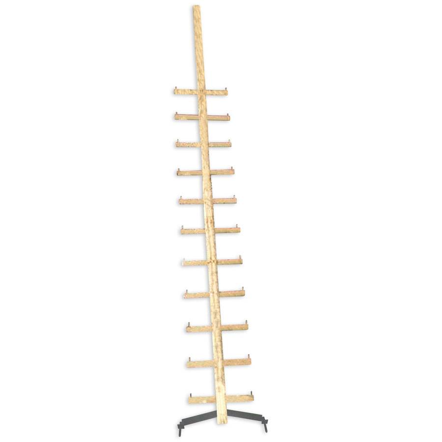 Nachdem die aus Tirol stammende Baumleiter ziemlich in Vergessenheit geraten war, hat sie in letzter Zeit aus Metall als „Tiroler Steigtanne“ eine Renaissance erlebt. Dieses Modell wird traditionell aus einer Fichtenstange mit eingezapften und verdübelten Hartholzsprossen hergestellt. An den Enden der Sprossen verhindern Holzzapfen ein seitliches Abrutschen des Fußes. Der Vorteil der Leiter liegt in dem beweglichen Fuß, der mit 7 cm langen Spitzen sicheren Halt auch auf unebenem gewachsenem Boden bietet. Die Leiter muss dabei immer in einer Astgabel angelegt werden! Fichtenstange als Holm Hartholzsprossen Holzzapfen an den Sprossen verhindern ein seitliches abrutschen Traglast: 120 kg beweglicher Fuß mit 7cm langen Spitzen Breite Leiter 40 cm Fuß min. 40 cm Wichtiger Hinweis Eine ausdrückliche Genehmigung der Berufsgenossenschaft besteht nicht, die Leiter erfüllt jedoch die Festigkeitsnormen der EN131 und ähnelt der geprüften Version aus Aluminium. Trocknungsrisse sind nicht vermeidbar und können vorkommen.