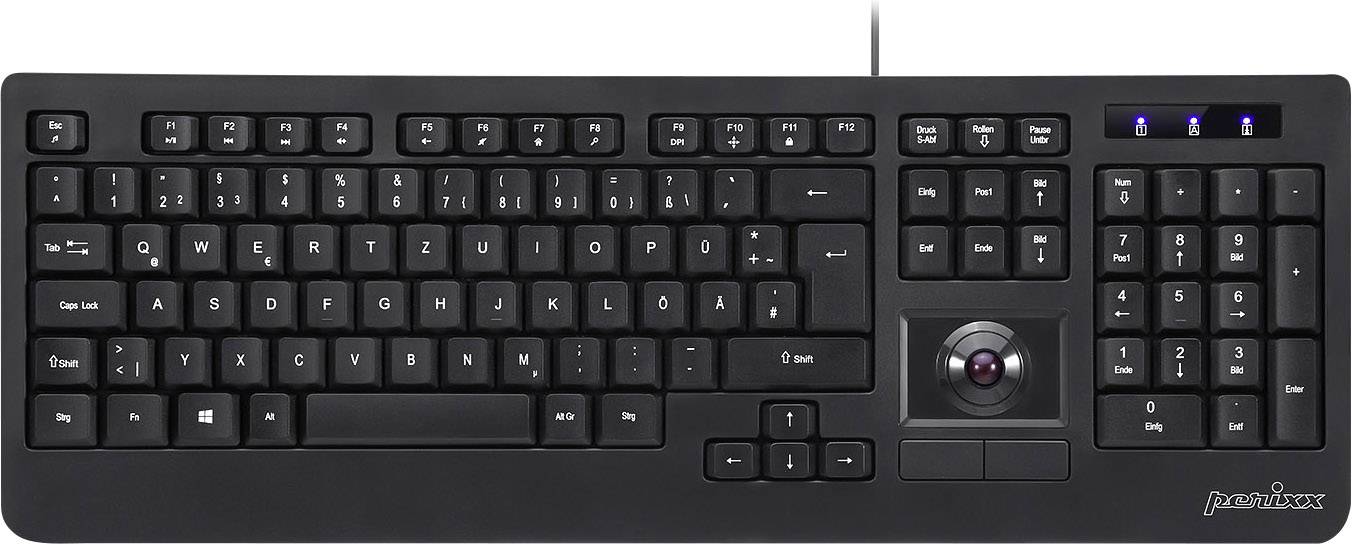 Perixx Periboard-521 USB Tastatur Deutsch, QWERTZ, Windows® Schwarz Integrierter Trackball, Maustasten