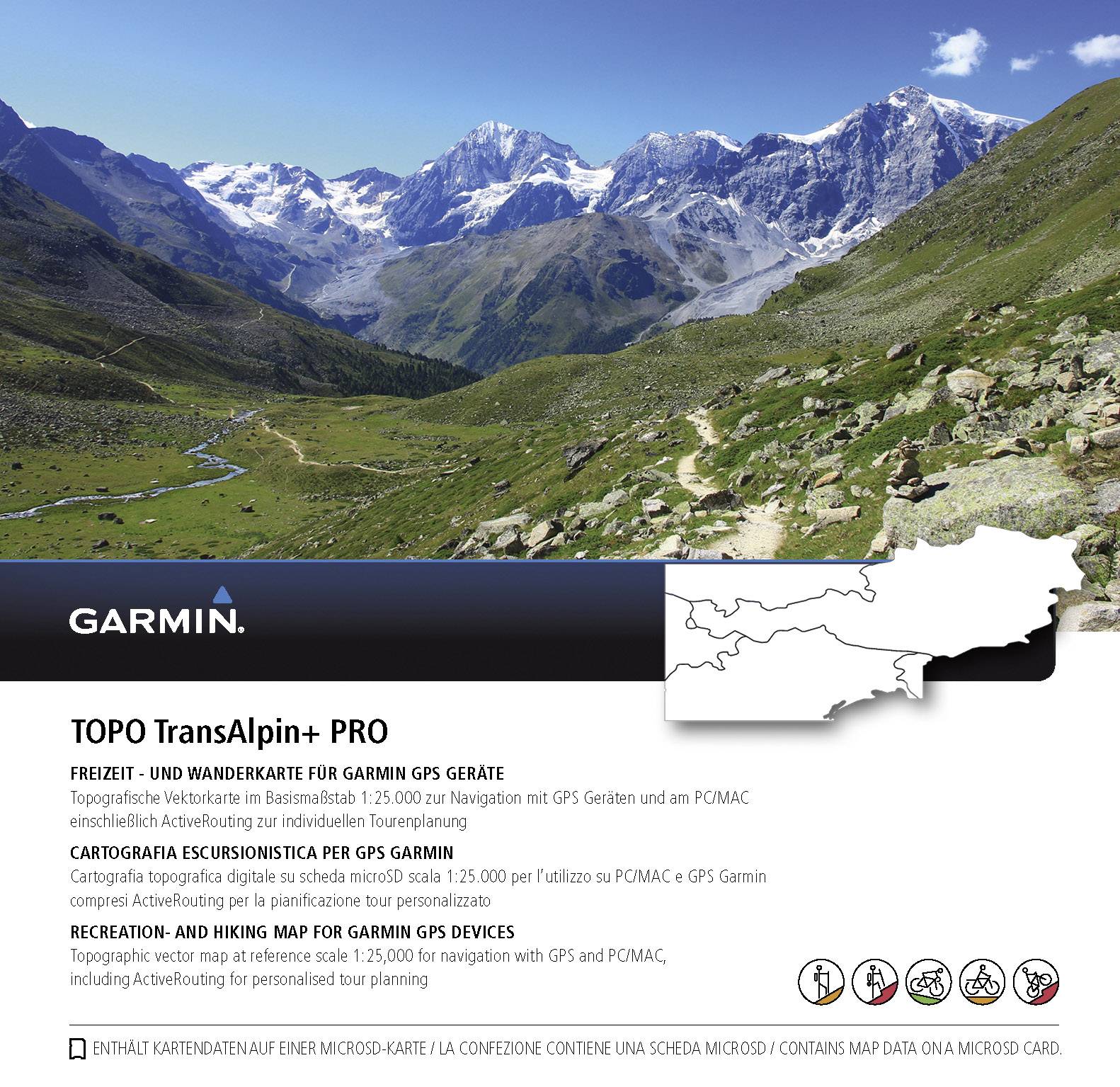 Garmin  Wanderkarte Outdoorkarte Fahrrad, Wandern Österreich, Deutschland inkl. topographische Karten