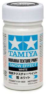 Die wasserbasierte TAMIYA-Texturfarbe Schnee-Effekt ist mit Marmorpartikeln (ca. 0,05-0,35 mm) angereichert, so dass Dioramen im Han dumdrehen eine realistische Schneeoberflächenoptik erhalten und im Licht funkeln.