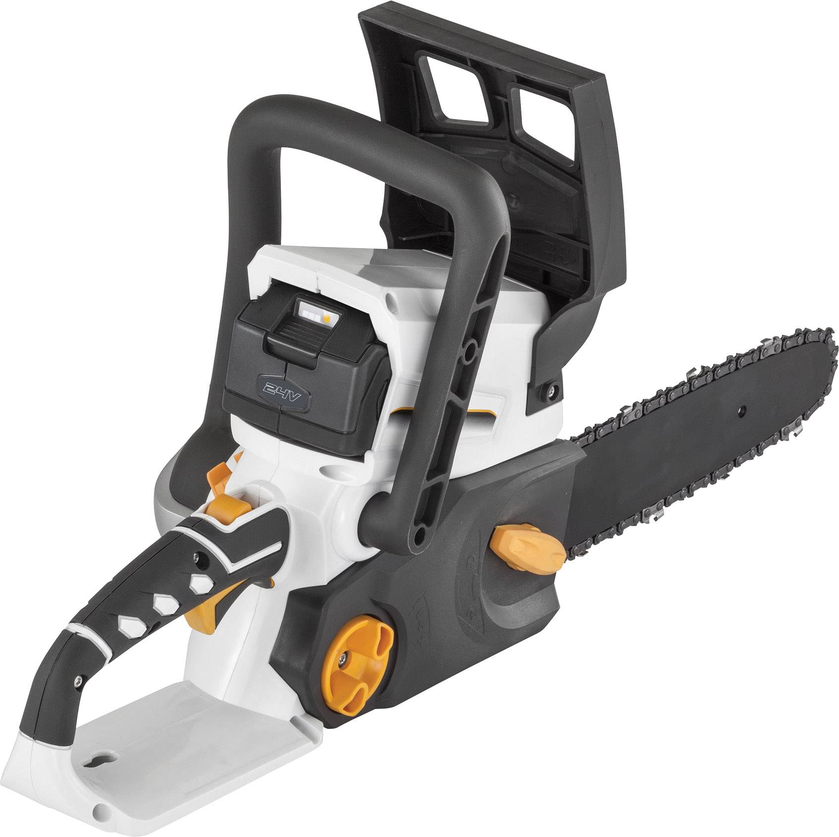 Die 24 Volt Kettensäge ist mit einem 24 Volt Lithium Akku ausgestattet. Durch kabelloses, stromunabhängiges Arbeiten wird Ihnen absolute Bewegungsfreiheit möglich sein. Die Kettenspannung erfolgt werkzeuglos, ebenso wie die Ölpumpe automatisch funktioniert. Durch den bürstenlosen Motor ist das Gerät praktisch wartungsfrei. Lieferung erfolgt inklusive Akku und Ladegerät.