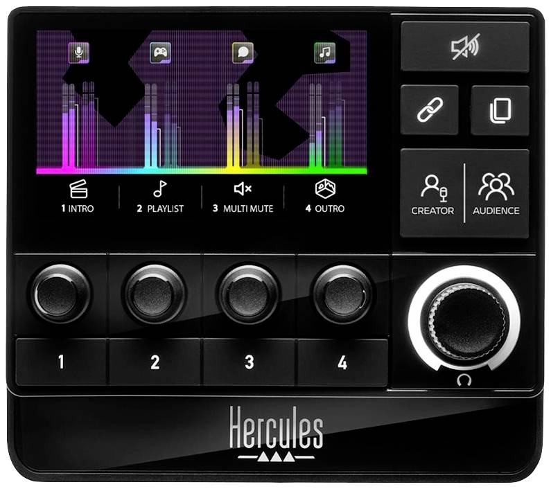 Der Hercules Stream 200 XLR ist ein Audio-Controller mit einer eingebauten Soundkarte, die es Streamern ermöglicht, den Audiomix, den sie hören, von dem Mix zu trennen, der für ihr Publikum gespielt wird. Dank dieses Audio-Controllers mit integriertem LCD-Bildschirm können Sie alle Ihre Audioquellen in Echtzeit verwalten: Spiele, Chat-Software, Musik, XLR-Mikrofon, Spielkonsole, zweiter Computer und mehr. Mit dem Hercules Stream 200 XLR können Sie ein auf Sie zugeschnittenes Erlebnis genießen, indem Sie den Soundlevel jedes Audiotracks individuell anzeigen und kontrollieren – für Sie und für Ihr Publikum! Einfach aktivieren, die Lautstärke verringern oder erhöhen, stumm schalten oder die Stummschaltung aufheben! Der Hercules Stream 200 XLR ist mehr als nur ein Audio-Controller, er ist gleichzeitig eine Schaltzentrale! Die 4 praktischen, belegbaren Aktionstasten werden Sie begeistern, um Ihre Steuerungen anzupassen (Mehrfachstummschaltung, URL-Launcher, Hintergrundwechsel...). Machen Sie sich keine Gedanken mehr über Audioeinstellungen und konzentrieren Sie sich auf Ihr Publikum. SEHEN SIE IHREN SOUND.