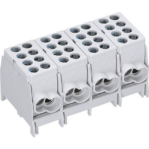 zur Montage auf Tragschiene 35mm, VDE, fingersicher nach VDE 0603-2, Isolierk”rper aus hochkriechstromfestem Polyamid mit Stahl-Klemmschrauben galvanisch verzinkt, 4 Klemmstellen je Pol, 400V
