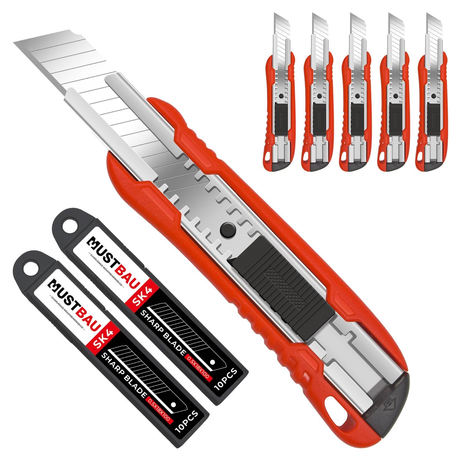 Mustbau Taschenmesser Klappmesser Cuttermesser mit 20 zusätzlichen SK4 Klingen