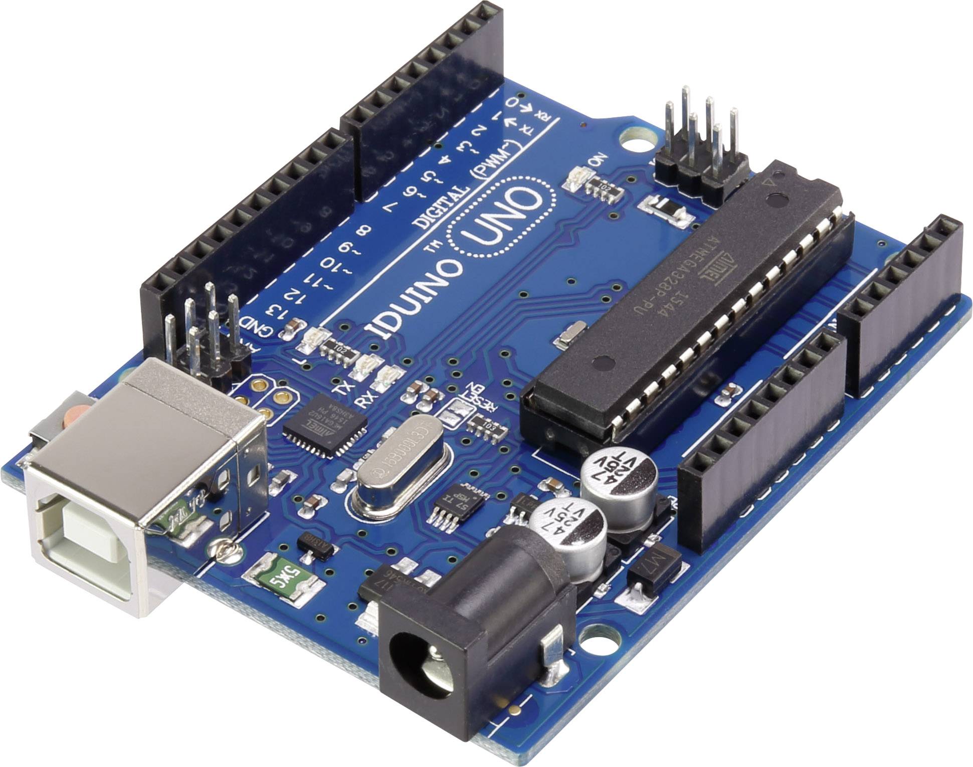 Das Iduino Uno ist ein Mikrocontroller-Board, das auf dem ATmega328 basiert. Es verfügt über 14 digitale Ein-/ Ausgangs-Pins (davon sind 6 als PWM-Ausgänge verwendbar), 6 analoge Eingänge, einen 16-MHz-Quarzoszillator, einen USB-Anschluss, ein Netzanschluss, ein ICSP-Header und eine Reset-Taste . Es enthält alles, was benötigt wird, um den Mikrocontroller zu unterstützen; schließen Sie den Microcontroller einfach an einen Computer via USB-Kabel an oder stecken Sie es an den AC/DC-Adapter oder eine Batterie an, um zu starten.