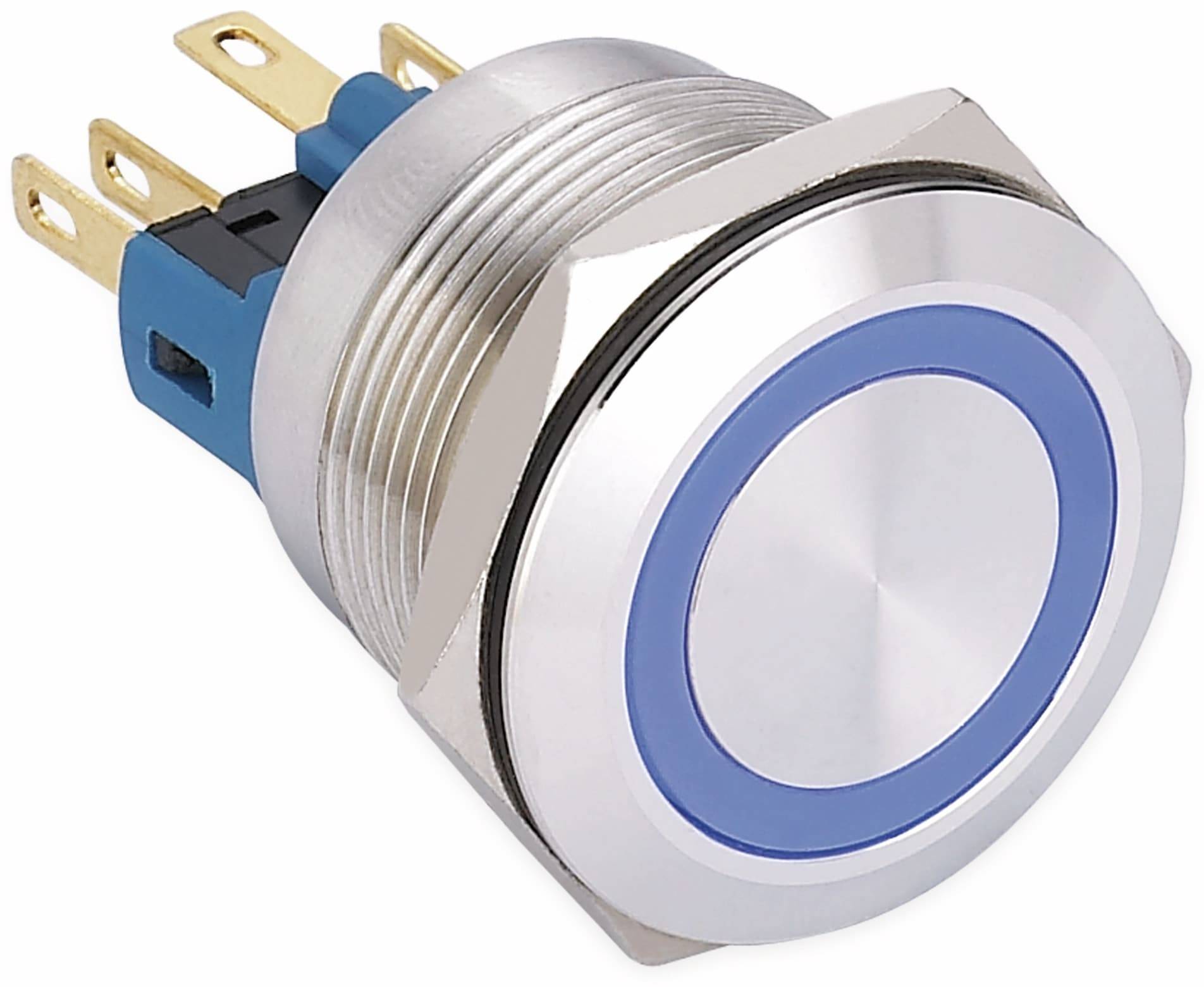 ONPOW Schalter, 24 V/DC, 1x Off/On, Beleuchtung rot, Lötanschluss, flach rund, Edelstahl, 22 mm