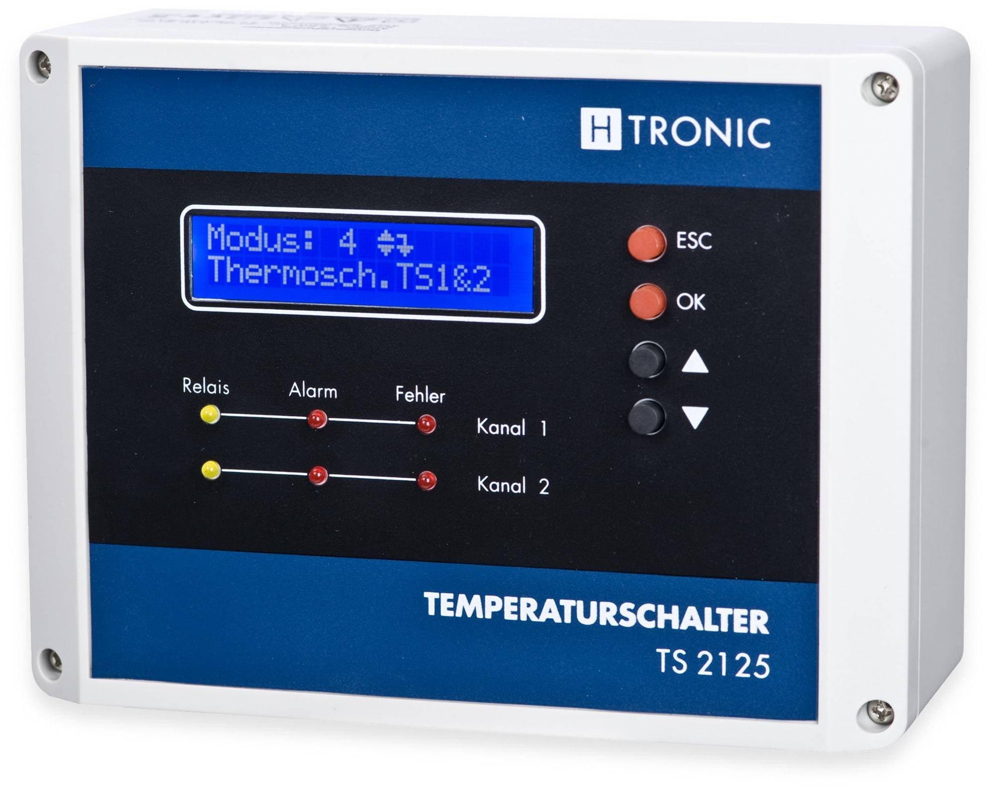 Der neue 2-Kanal Temperaturregler TS 2125 eignet sich hervorragend für alle Einsatzbereiche, bei denen eine Temperaturregelung im Heiz- oder Kühlbetrieb erforderlich ist. Ein externer Temperatursensor erfasst Messbereiche von –99 bis +125°C. Das Gerät ist nicht nur übersichtlich und einfach in der Handhabung, sondern auch sicher in der Anwendung, denn Fühlerkurzschluss und Fühlerunterbrechung werden sofort erkannt. Der Thermoschalter kann eigenständig eingesetzt werden, aber auch als Ersatz für defekte mechanische Thermostate oder für Digitalthermometer dienen. Features: - Schalttemperatur von –55 … +125 °C frei einstellbar - Hysterese frei einstellbar - Min-/Max.-Anzeige - Fühlerüberwachung auf Kurzschluss und Unterbrechung - Relaiszustand bei Fühlerfehler einstellbar - LED-Anzeigen für Relais ein, Fühlerfehler und Alarm - Fernmessung bis 50 m möglich - 7 Betriebsarten Technische Daten: - Betriebsspannung: 100…230 V~ - Ausgangsspannung: max. 3 kW - Leistungsaufnahme: ca. 3 VA - Messbereich: -55…+125°C - Genauigkeit: +/-0,5°C…+/-2°C - Auflösung : 0,1 °C - Schutzart: IP20 - Maße (HxBxT): 160x120x60 mm Lieferumfang: - Temperaturschalter - Temperatursensor - Metall mit Befestigungslasche - Steckbares 2 m Anschlusskabel - Betriebsanleitung
