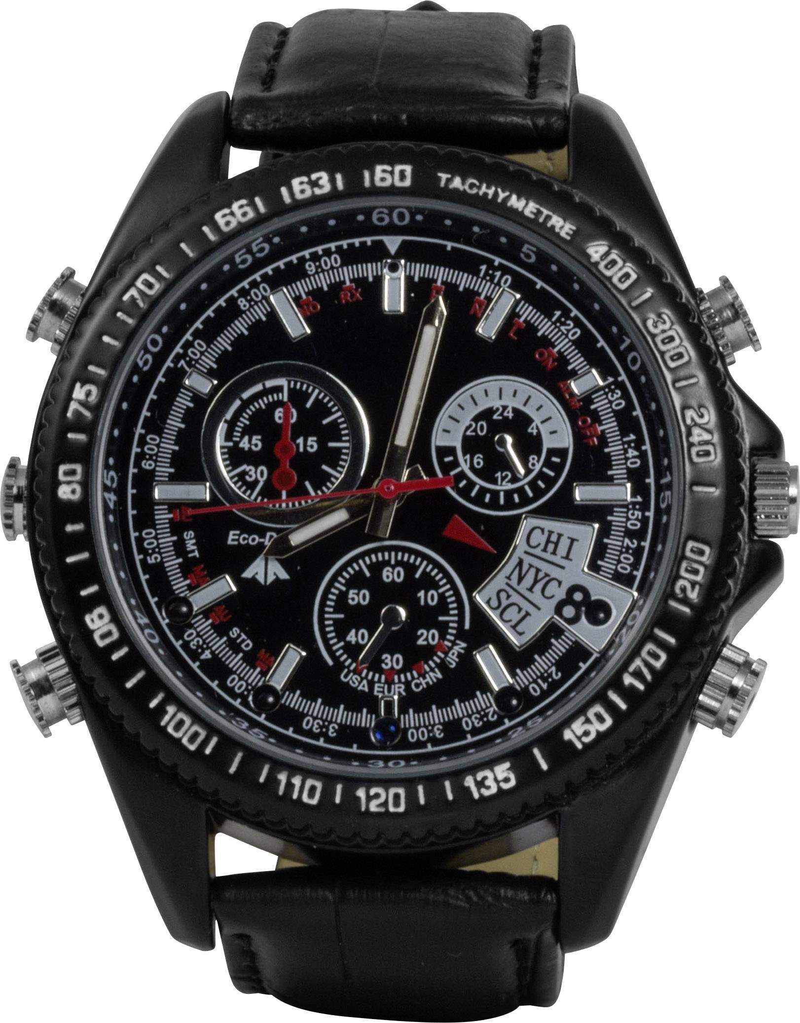 Unauffällige Kameralinse im Zifferblatt · Videoauflösung 1920 x 1080 mit Ton · WEB-Cam-Funktion · 8 GB interner Speicher · Einfache Übertragung per USB-Kabel auf den PC.