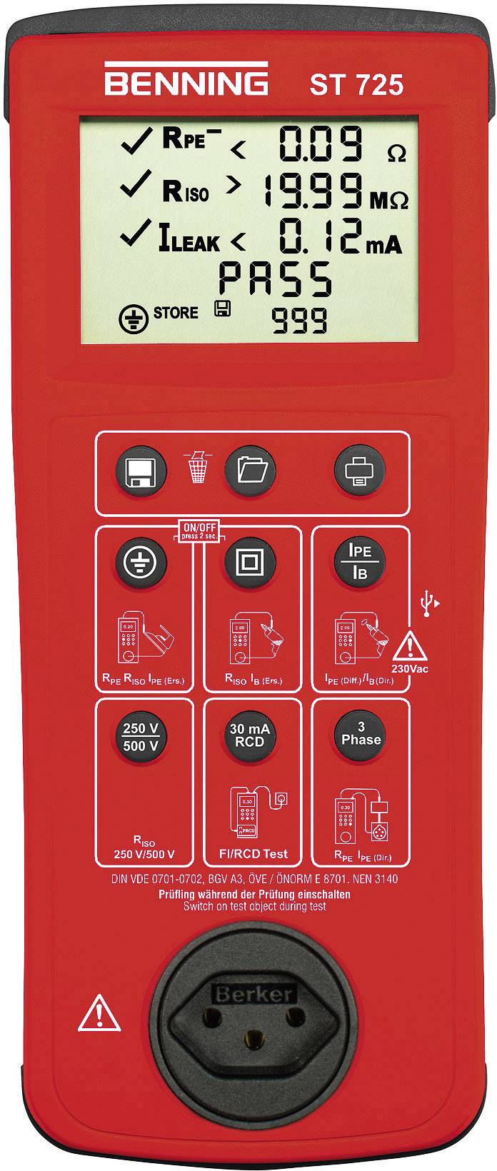 Benning, 050317, ST 725 CH, vde 0701-0702, gerätetester, schutzleiterstrom, A0-34