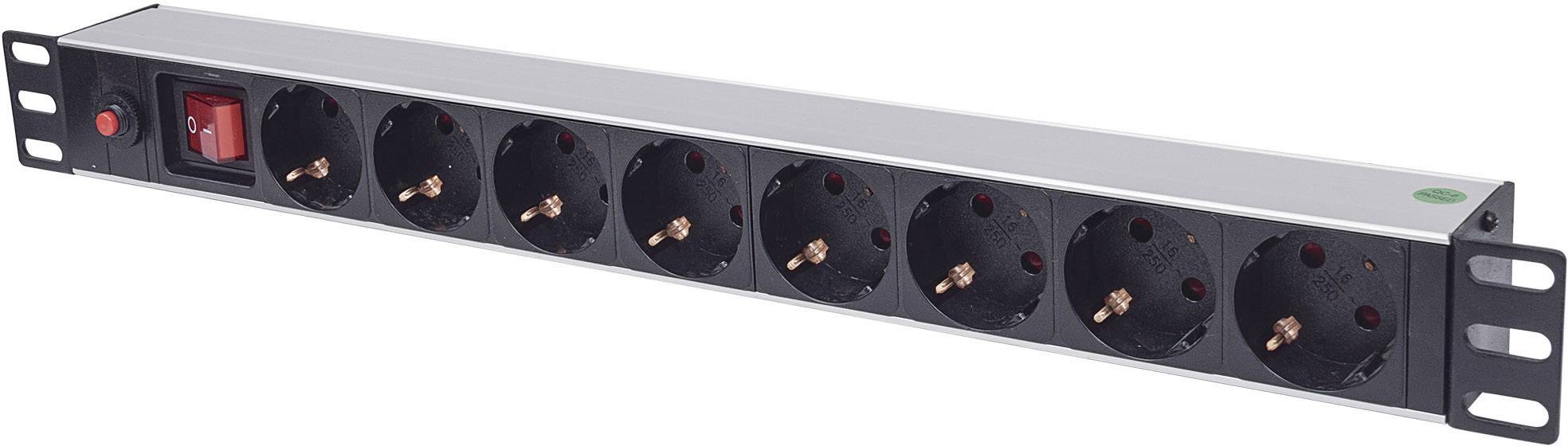 Intellinet 713986 19 Zoll Netzwerkschrank-Steckdosenleiste 1 HE Schutzkontaktsteckdose Aluminium Profil, Festeinbau, mit Schalter